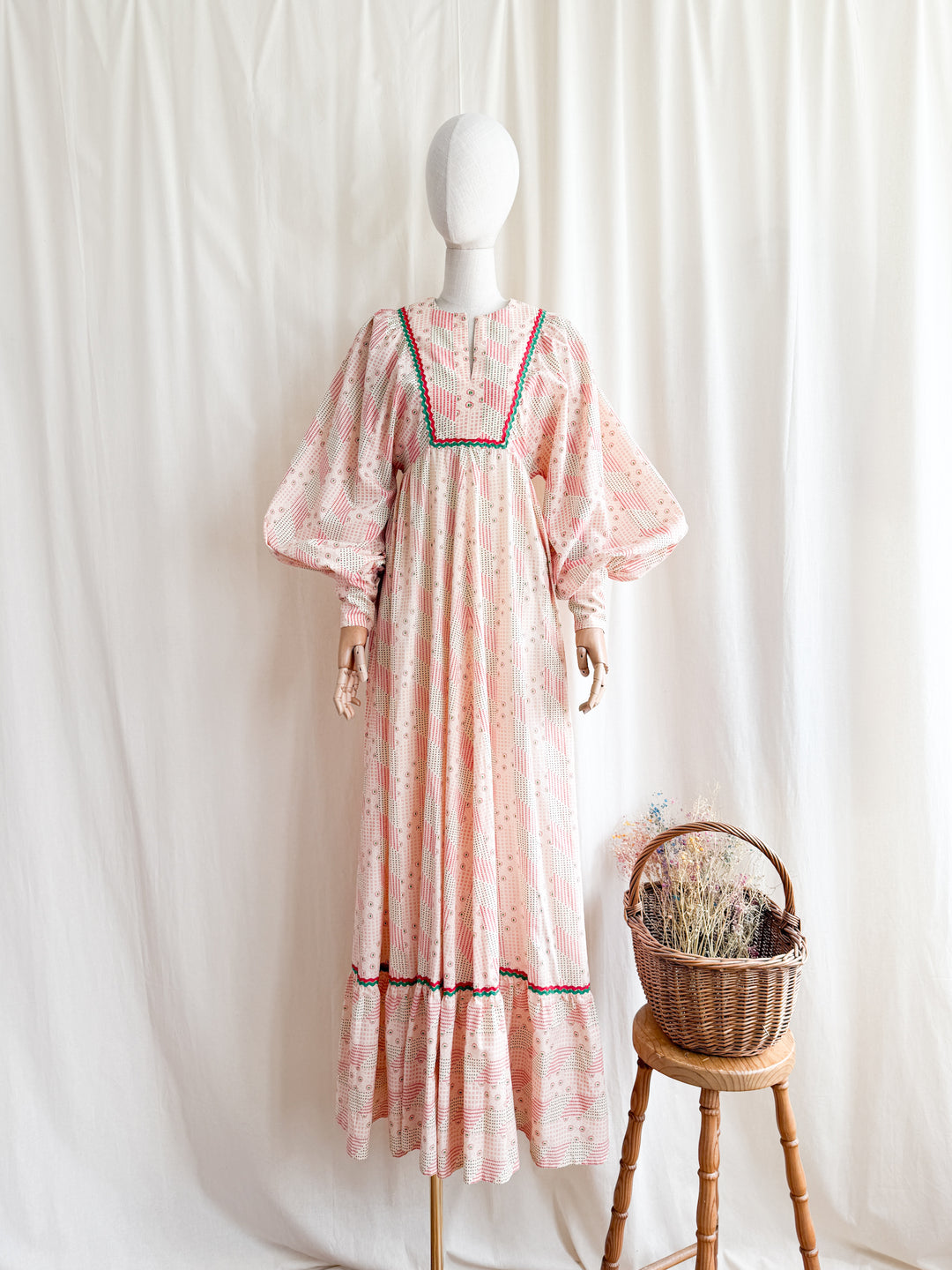 Stunning Holy Grail Rare 70s Handmade Cotton Billowing Sleeve Maxi Dress