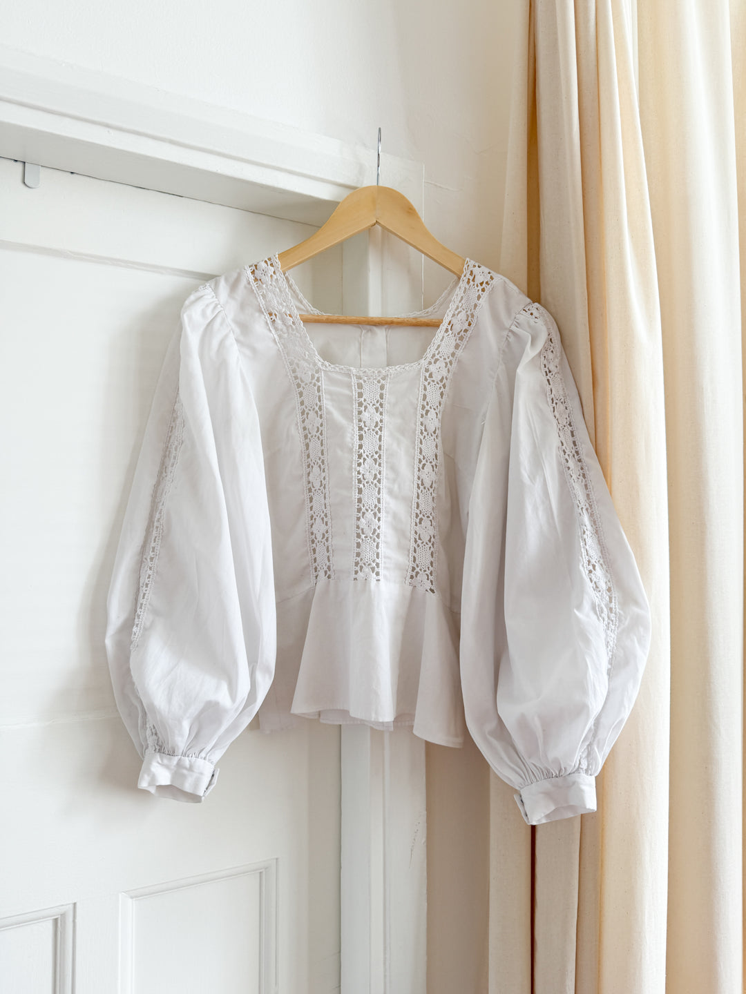 Beautiful Rare 70s Cotton Lace Trimmed Blouse