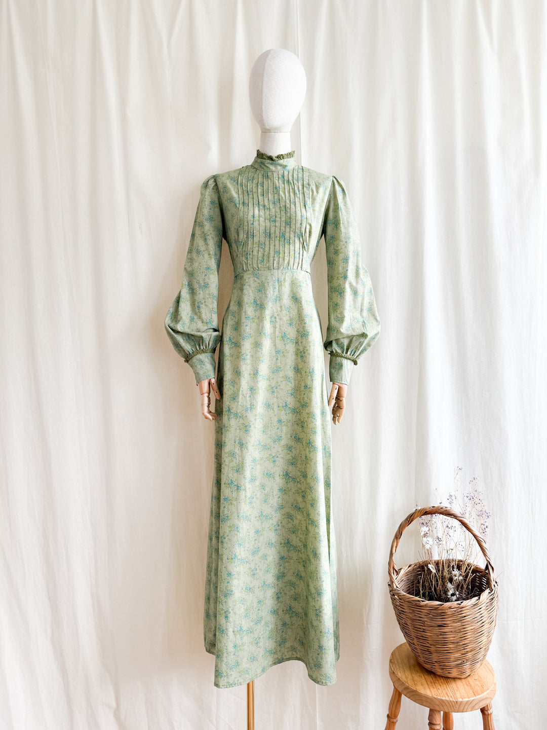BOHEMIAN GREEN COTTON BLEND 70S DREAM DRESS