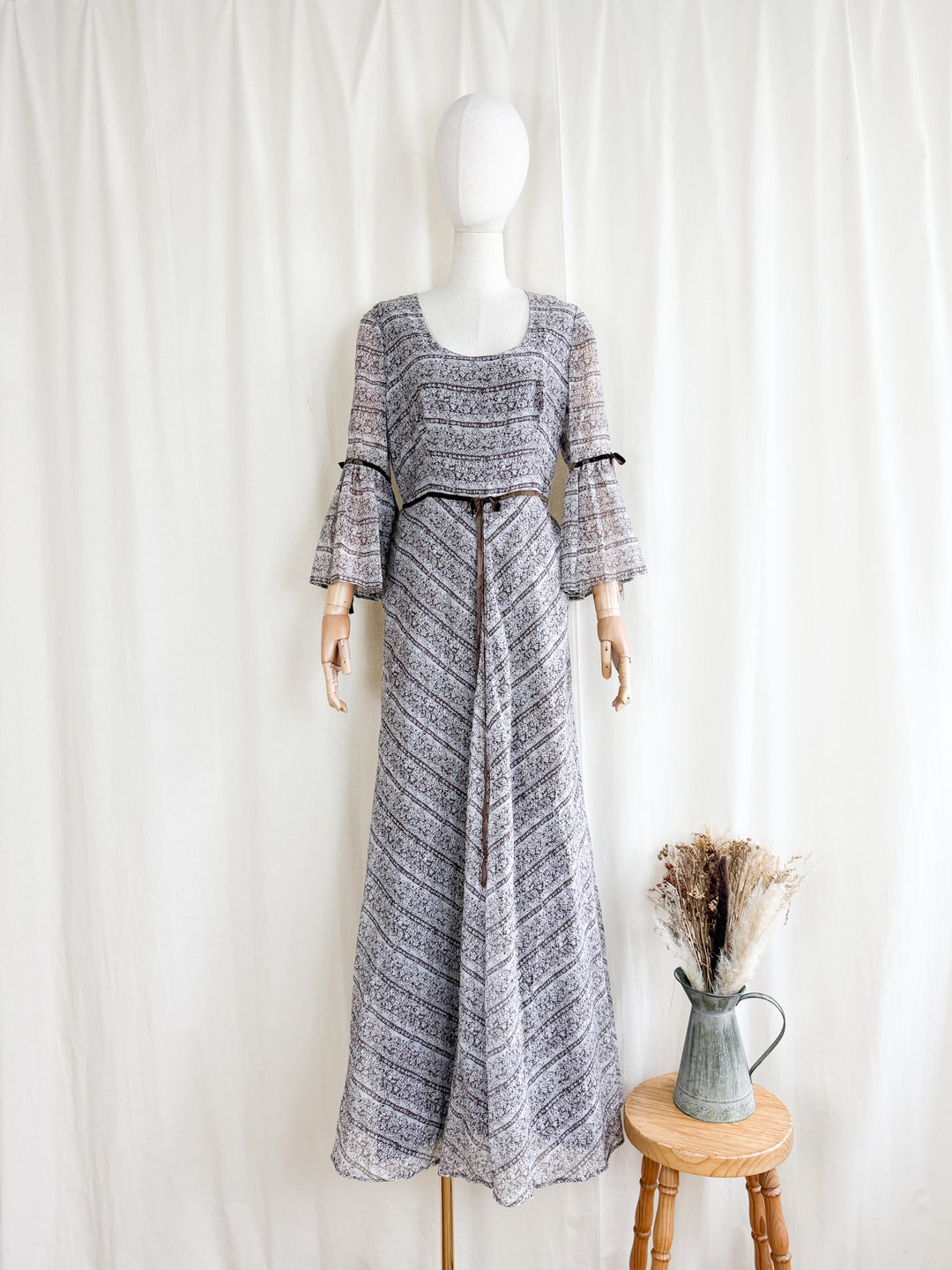 Dreamy 1970s Dark Brown Soft Cotton Bohemian Prairie Maxi Dress