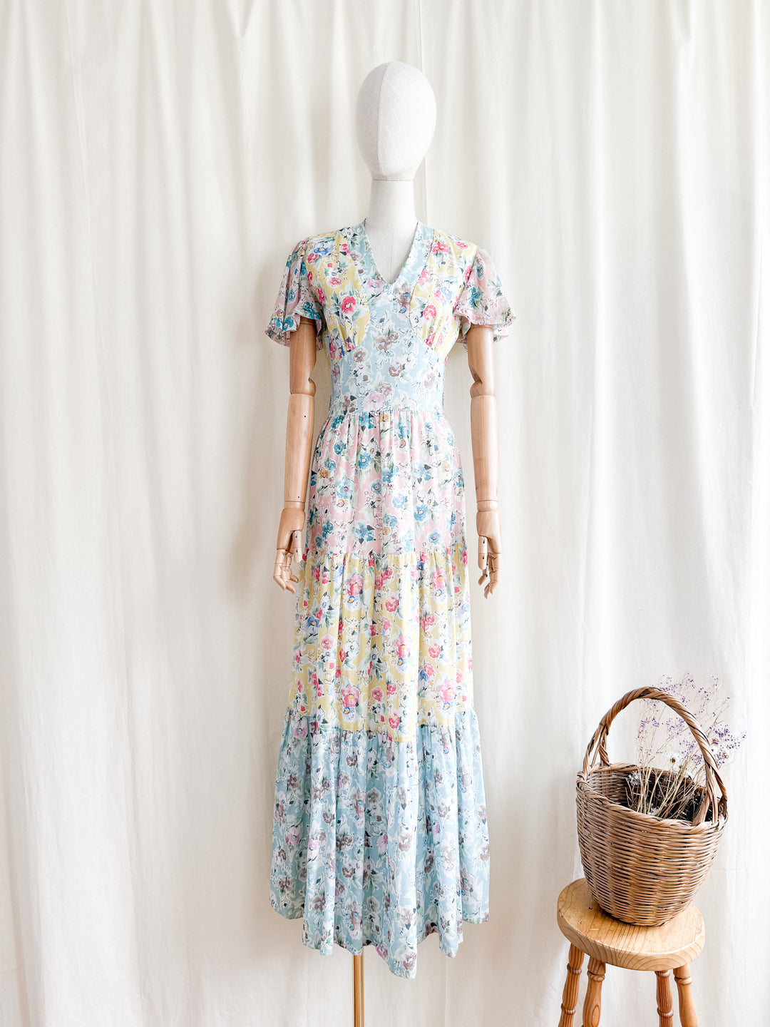 Heavenly Rare 70s Romantic Floral Cotton Maxi Dress