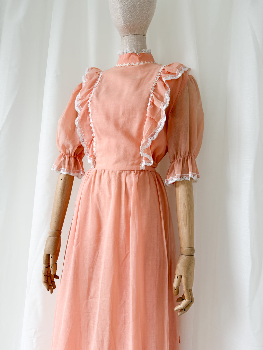 Stunning 1970s Peach Cotton Maxi Dress