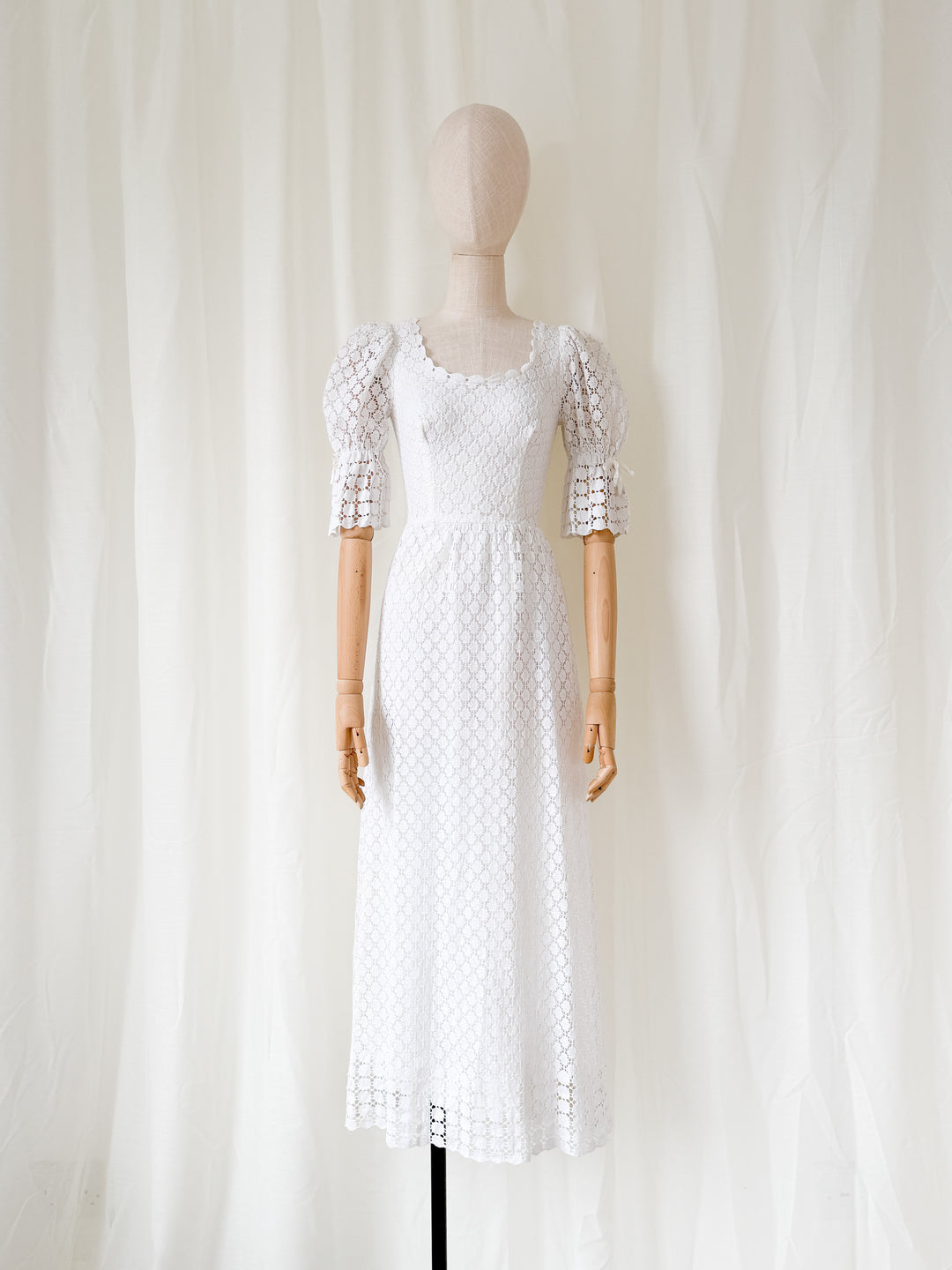 Precious Rare 1970s Candy Jones Cotton Lace Maxi Dress