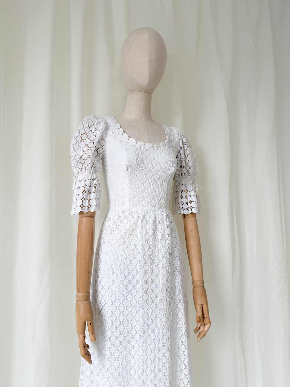 Angelic 1970s Heavy Cotton Broderie Anglaise Maxi Dress