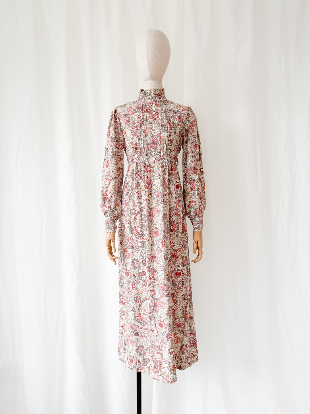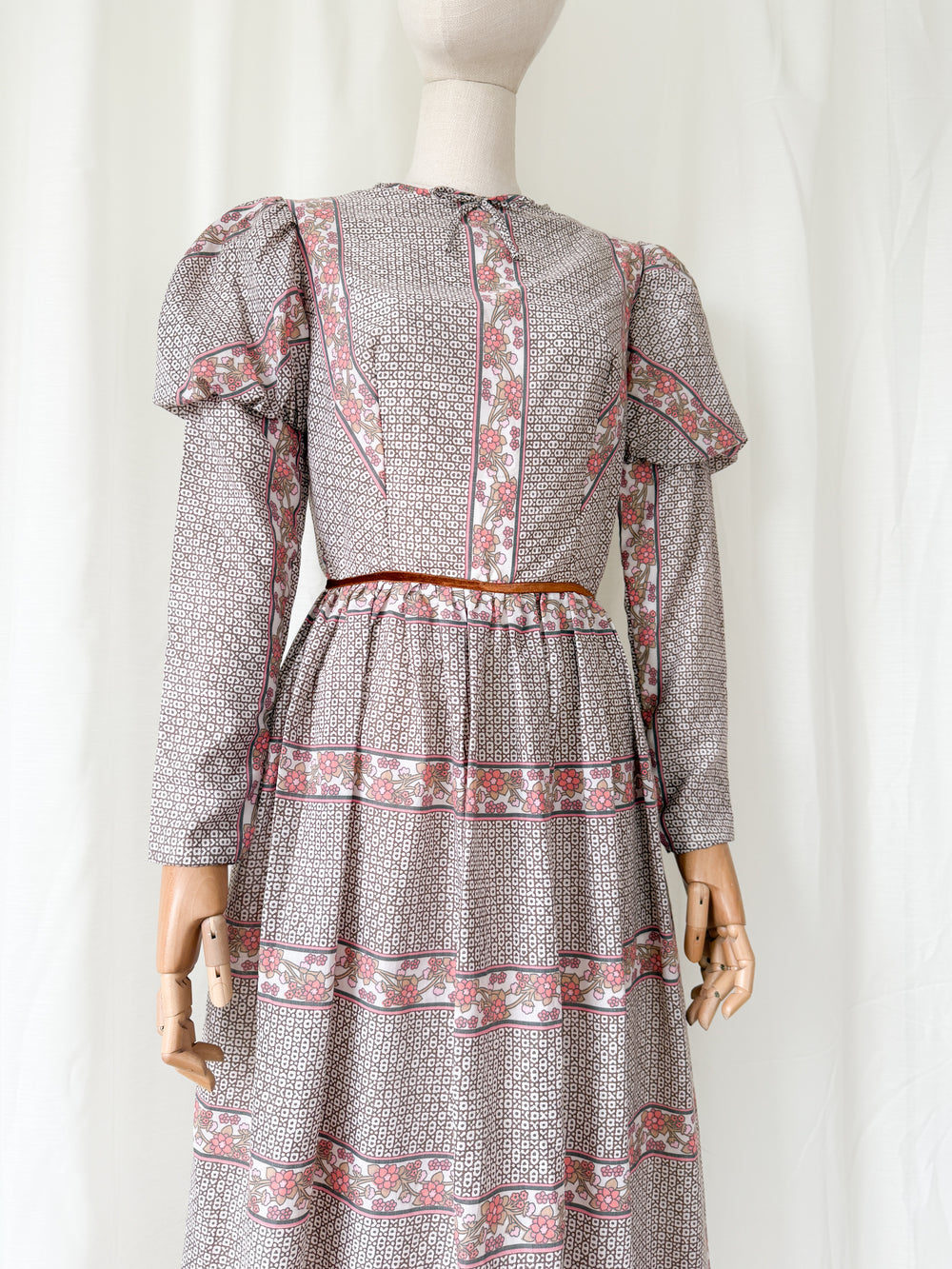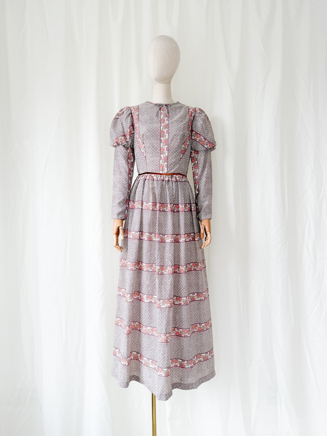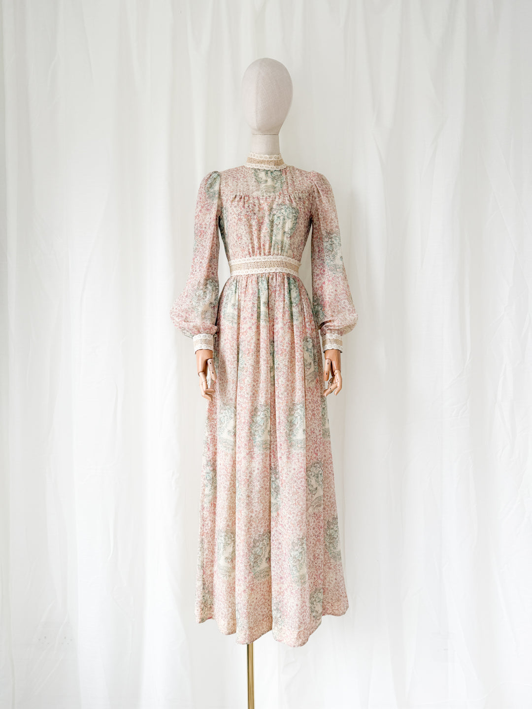 Incredible Beautiful 1970s Juliet Sleeve Floral Cotton Maxi Dress