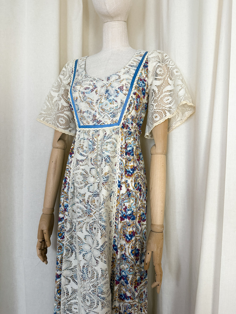 Precious Rare Lace Panelled 1970s Cotton Maxi Dress
