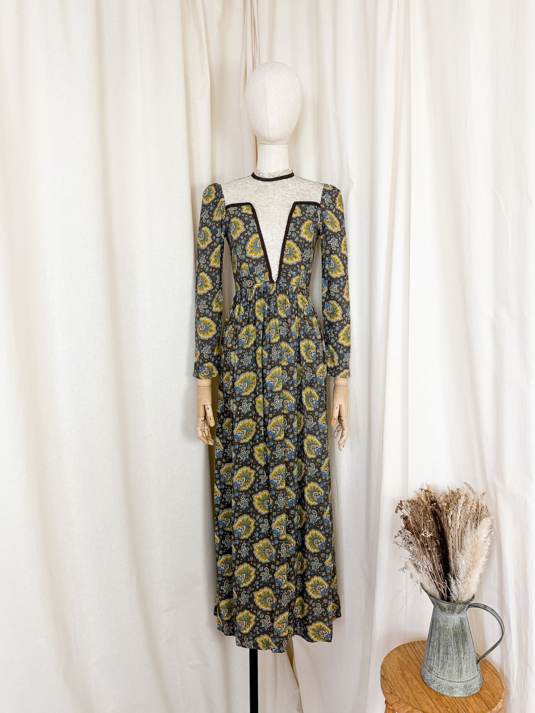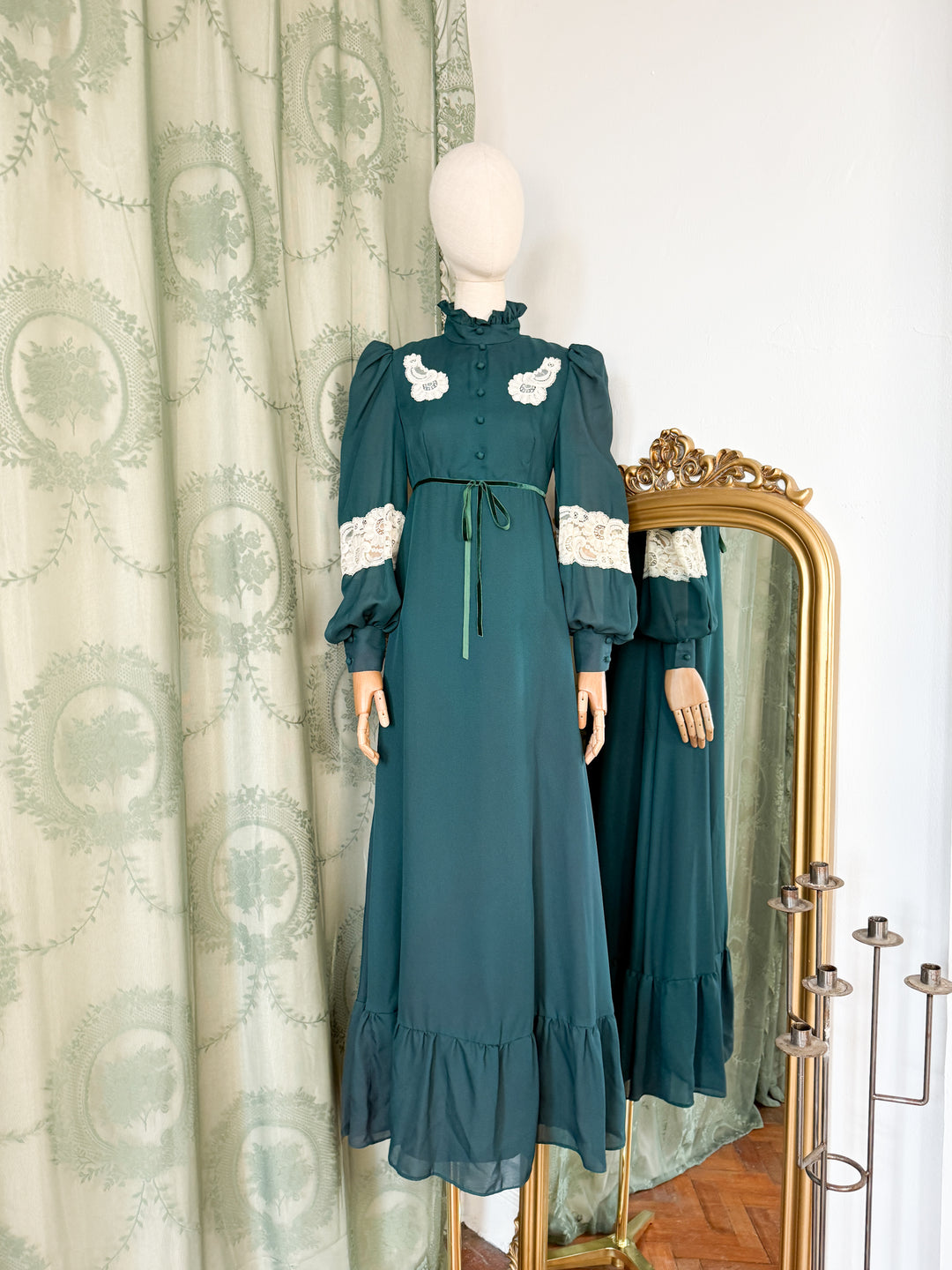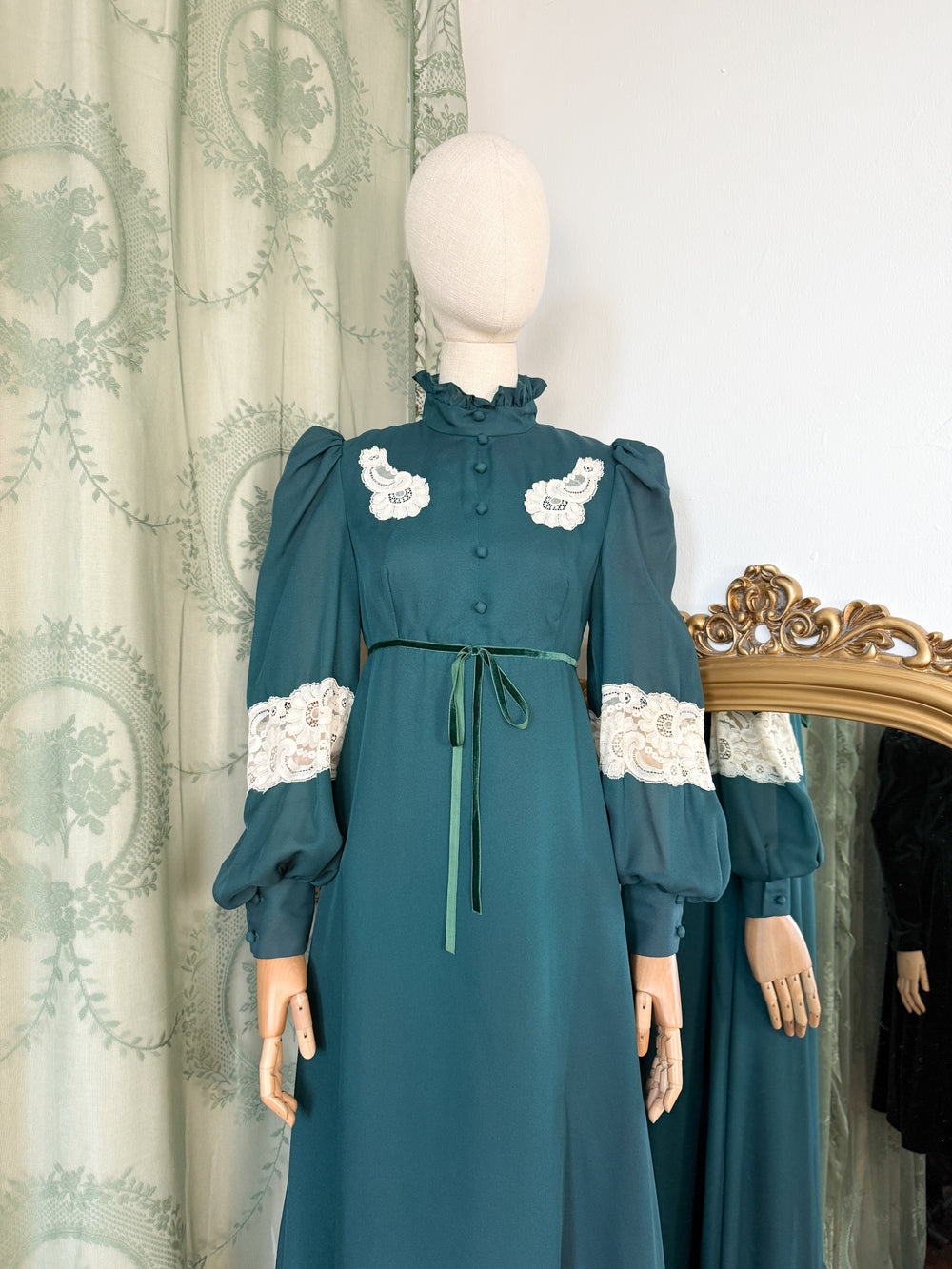 ISOLDE ~ HAUNTING TEAL 1970S LACE PANELLED MAXI DRESS