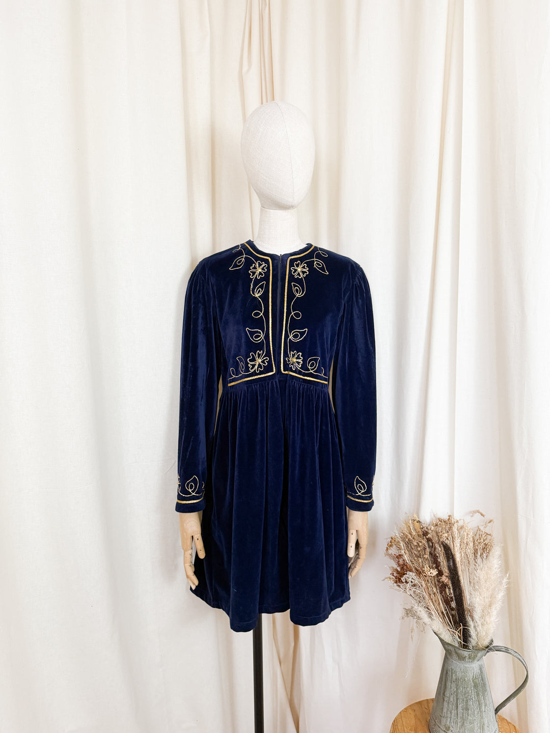 Gorgeous 1970s Embroidered Velvet Mini Dress