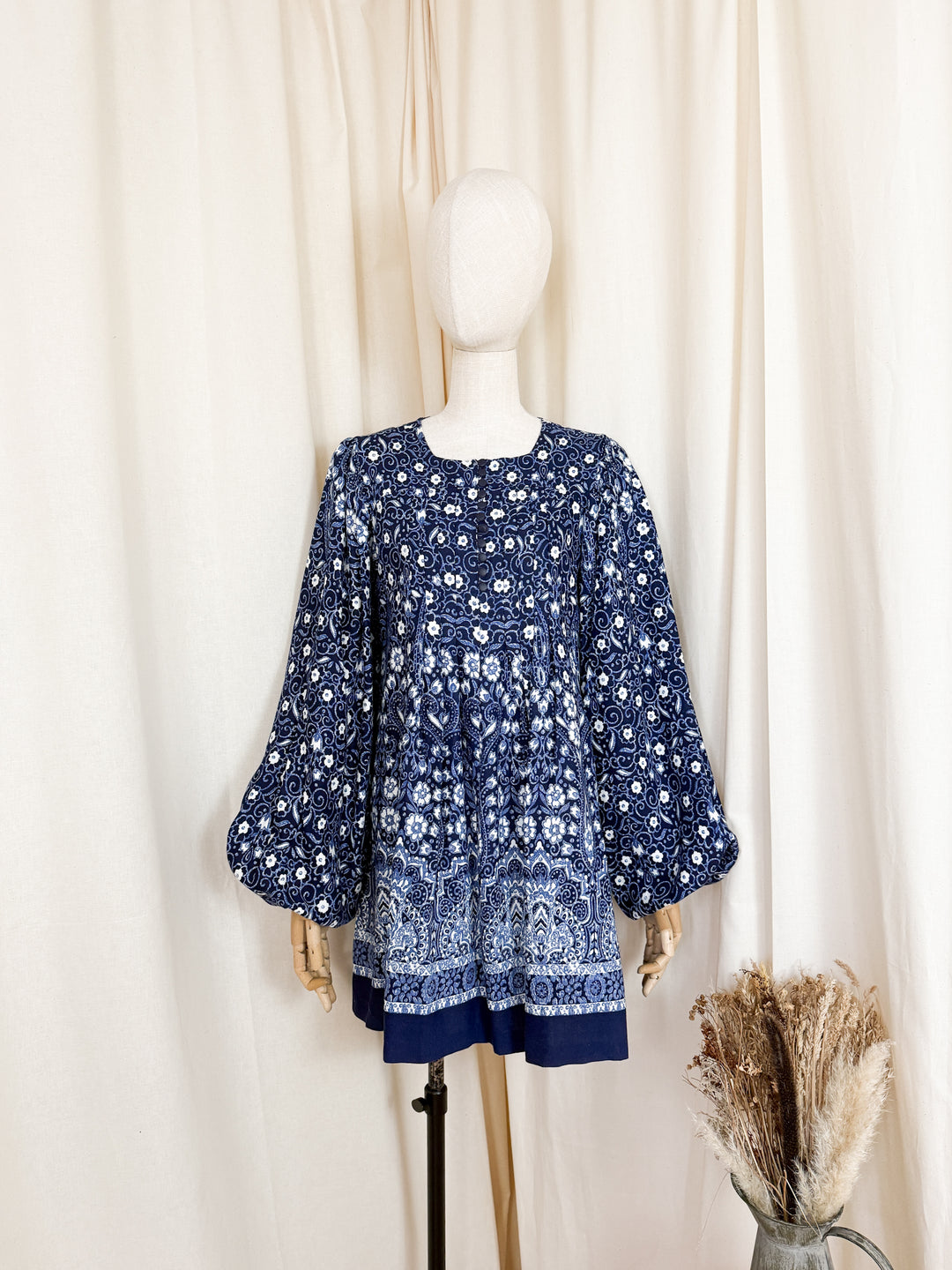 Incredible Precious Rare Bluestocking Liberty Cotton 1970s Maxi dress