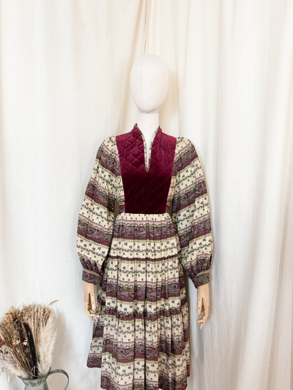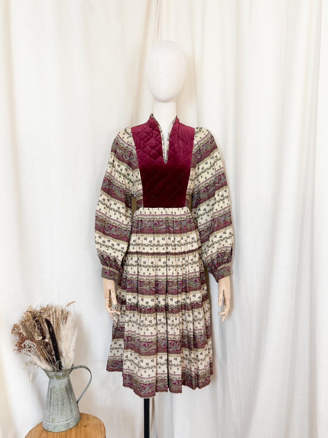 Beautiful Precious 1970s Susie G Cotton Velvet Bodice Midi Dress