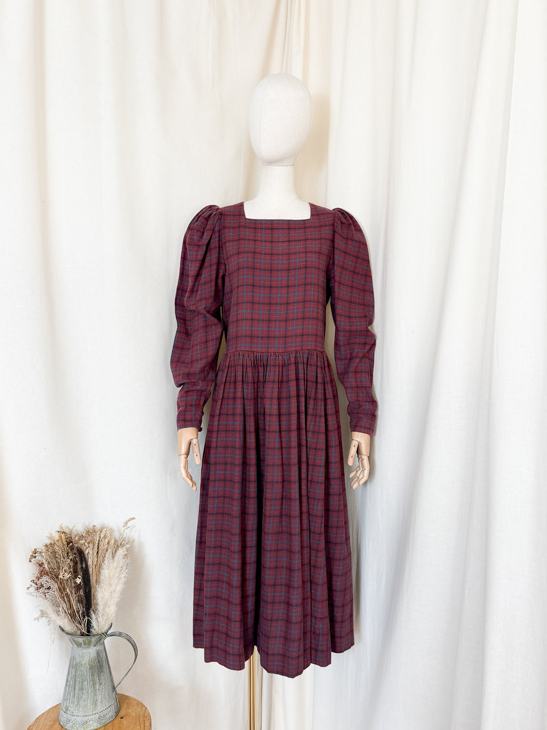 Stunning Rare Early 80s Laura Ashley Wool Blend Tartan Plaid Midi Dress
