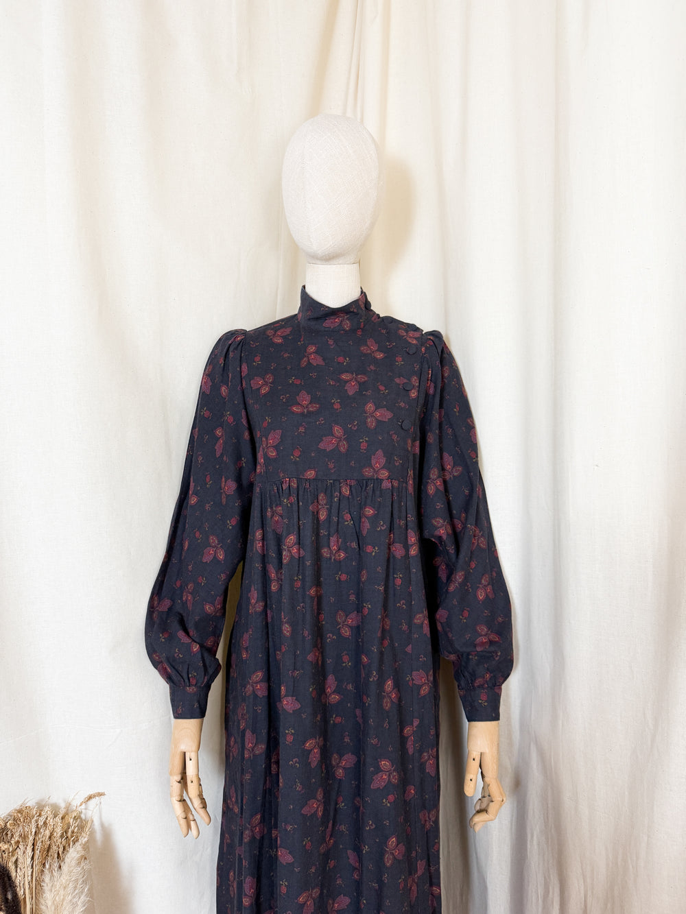 Gorgeous Rare 80s Dark Navy Laura Ashley Wool Smock Dress