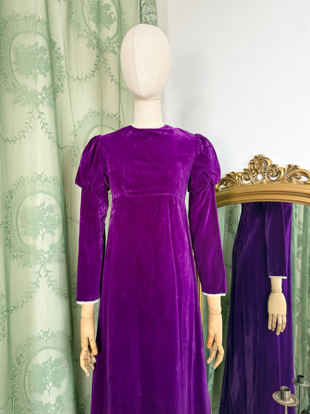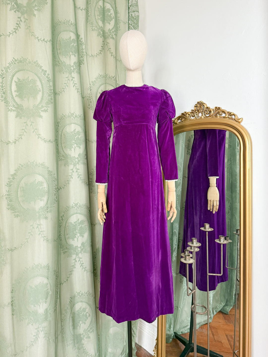 SABRINA ~ ADORABLE HAUNTING LATE 1960S JOHN CHARLES PURPLE VELVET MAXI DRESS