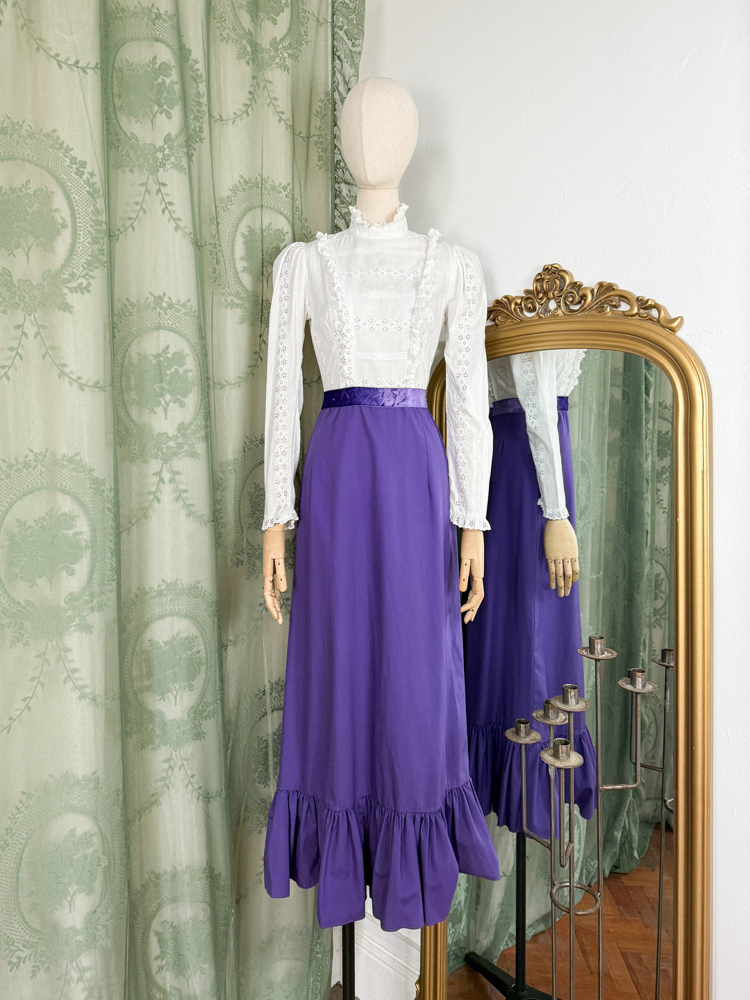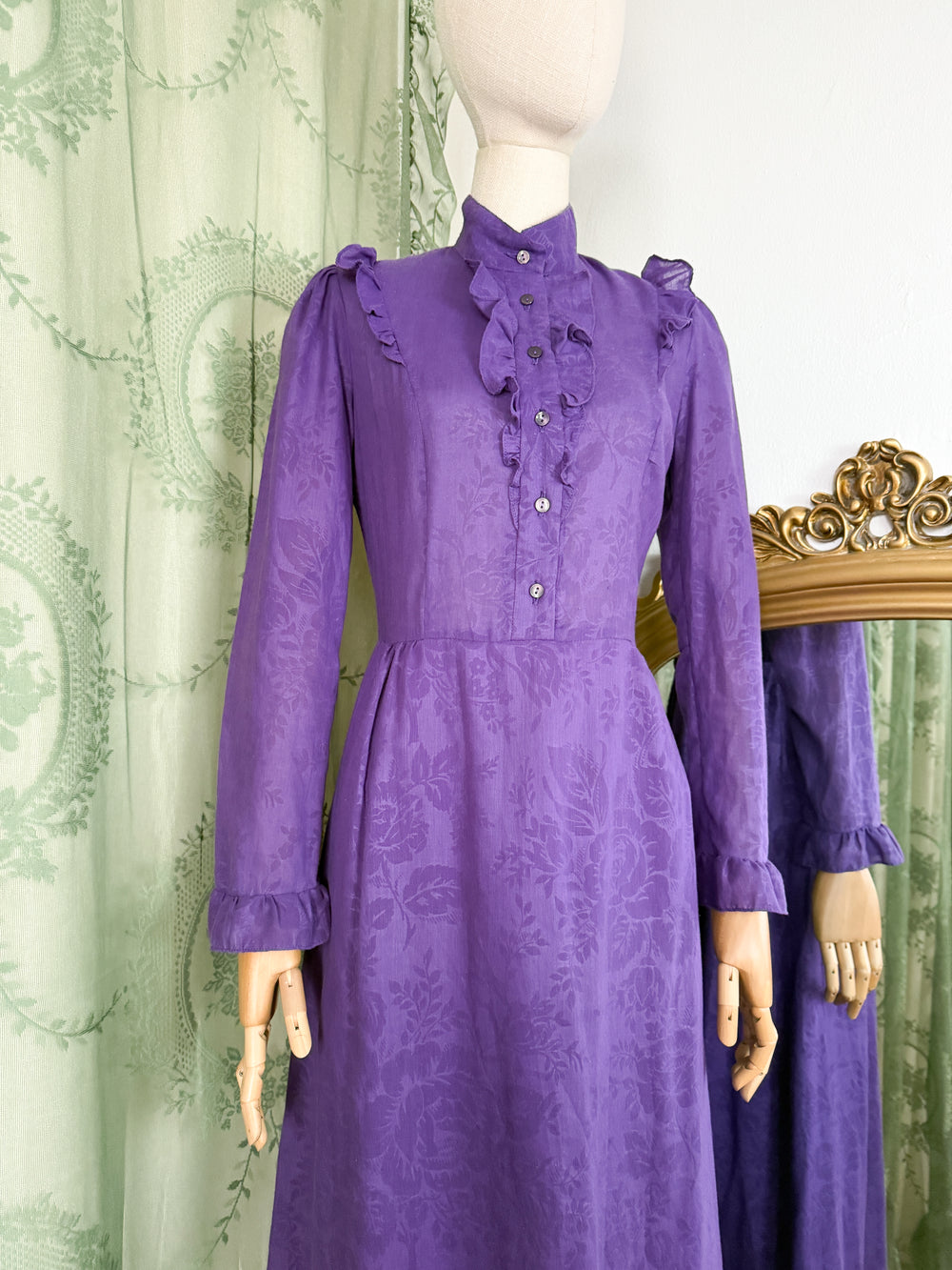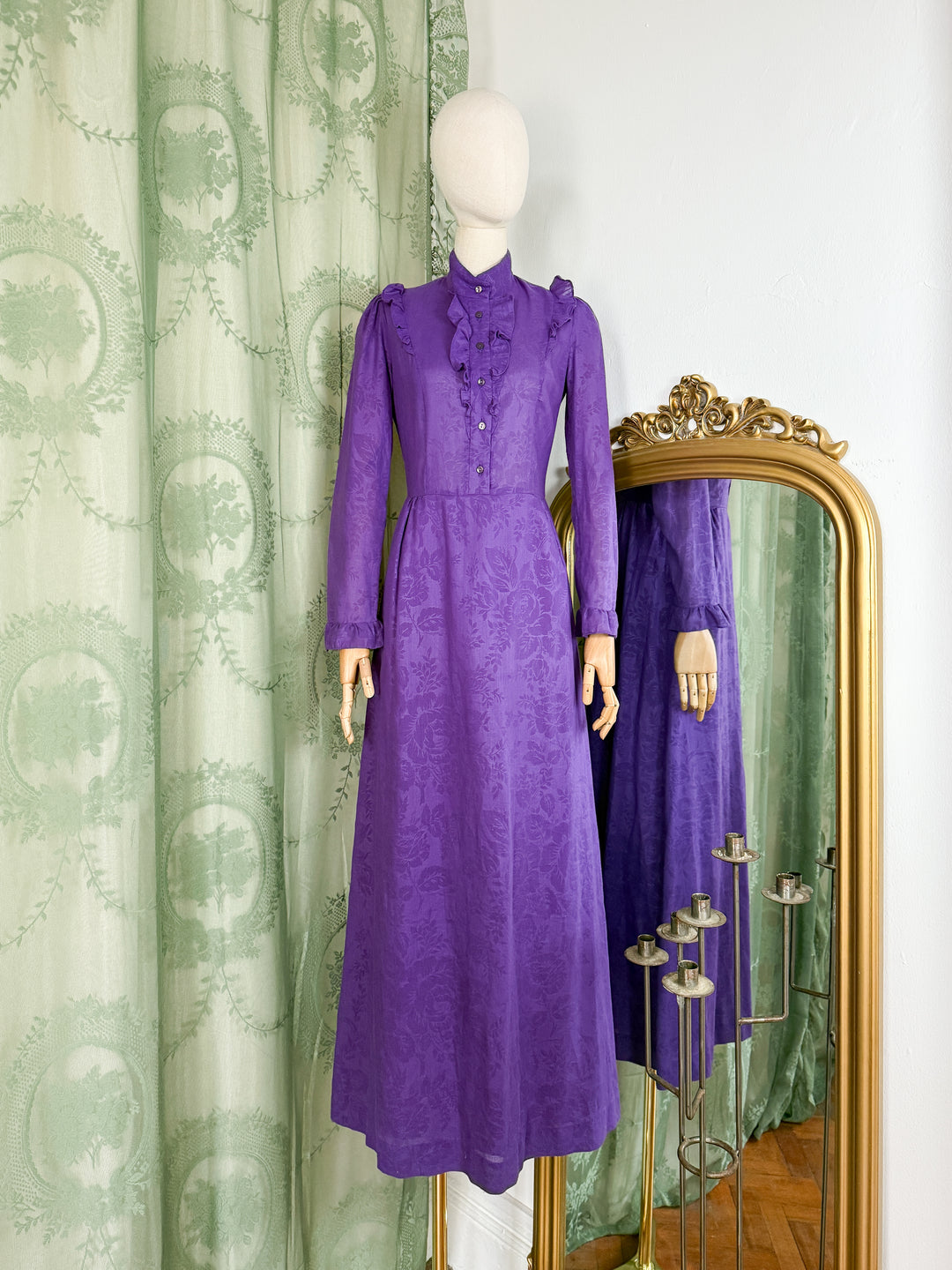 AURORE ~ GORGEOUS 1970S LACE TRIMMED PURPLE MAXI DRESS