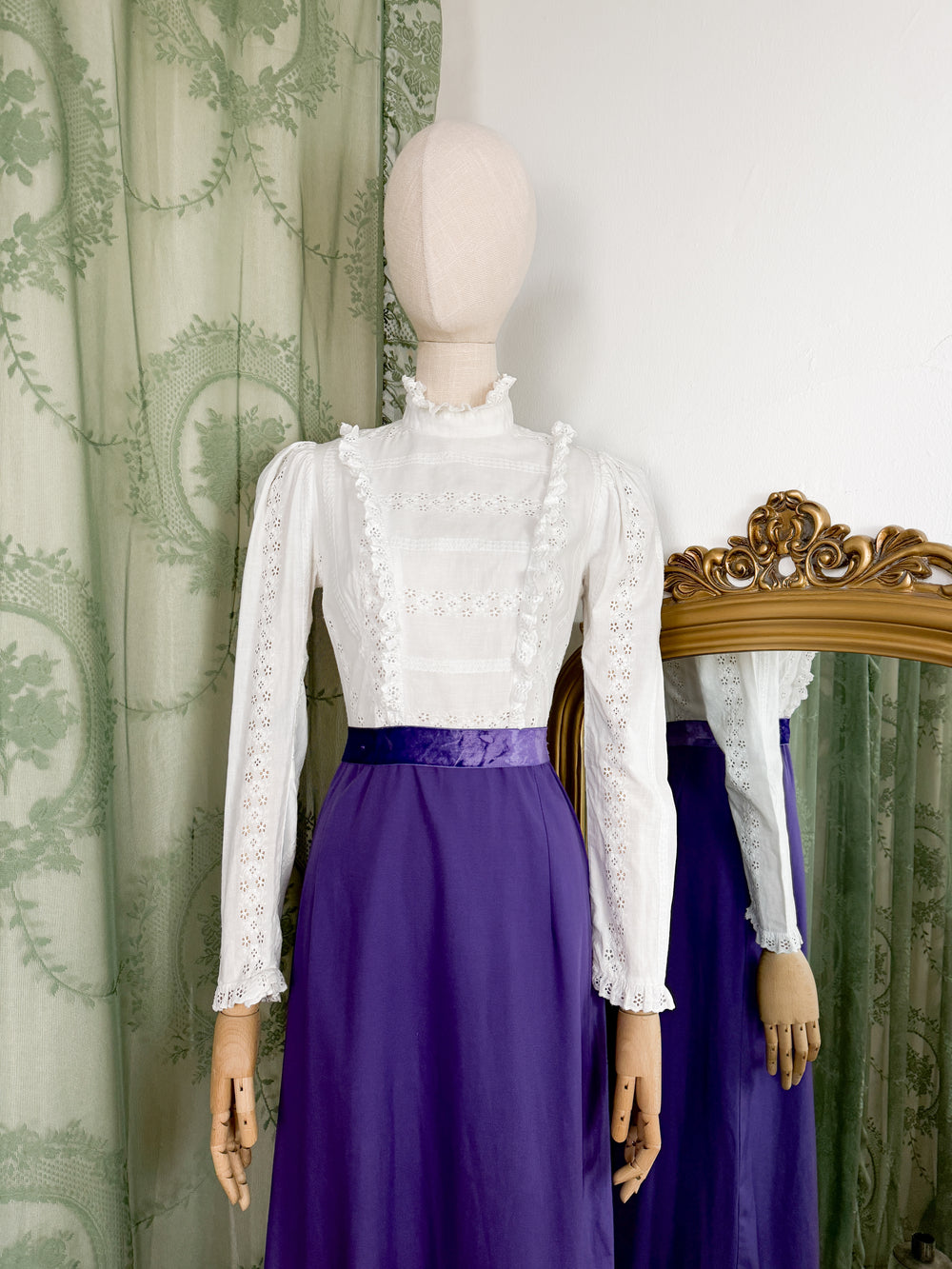 VIOLET ~ GORGEOUS RARE 1970S BRODERIE COTTON MAXI DRESS BY QUAD