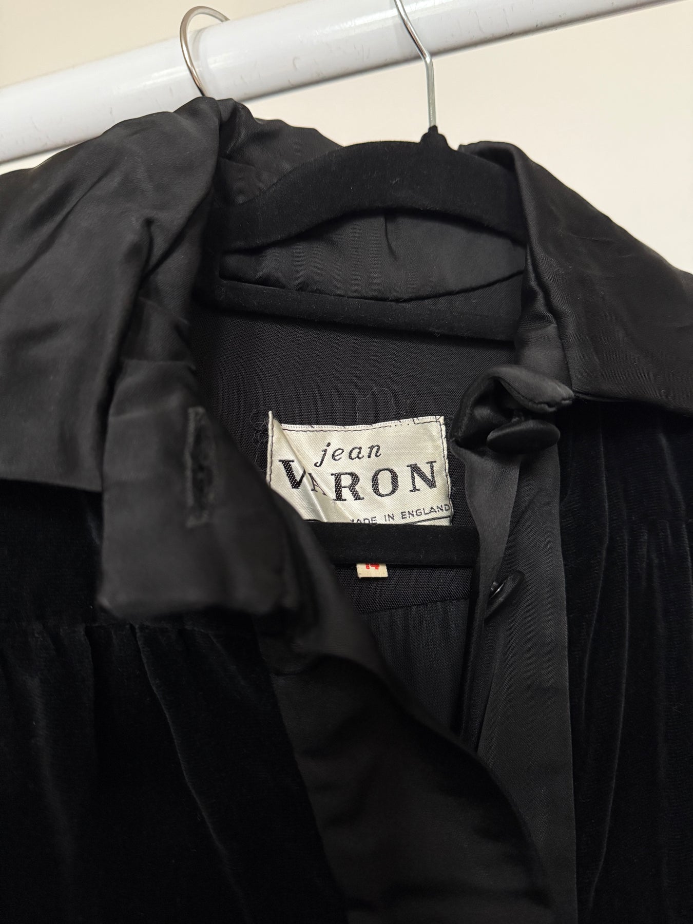 She is a rare and precious jewel from the 1970s, a holy grail black velvet maxi dress by Jean Varon. Her satin panels and trims catch the light with subtle seduction, while the button-through bodice adds a touch of vintage mystery. Enveloped in gothic romance, she exudes a haunting, witchy elegance that transcends time. This exquisite, high-end treasure is a one-of-a-kind find for those who seek a truly enchanting statement piece and truly is one of my most exquisite and precious Heirlooms..