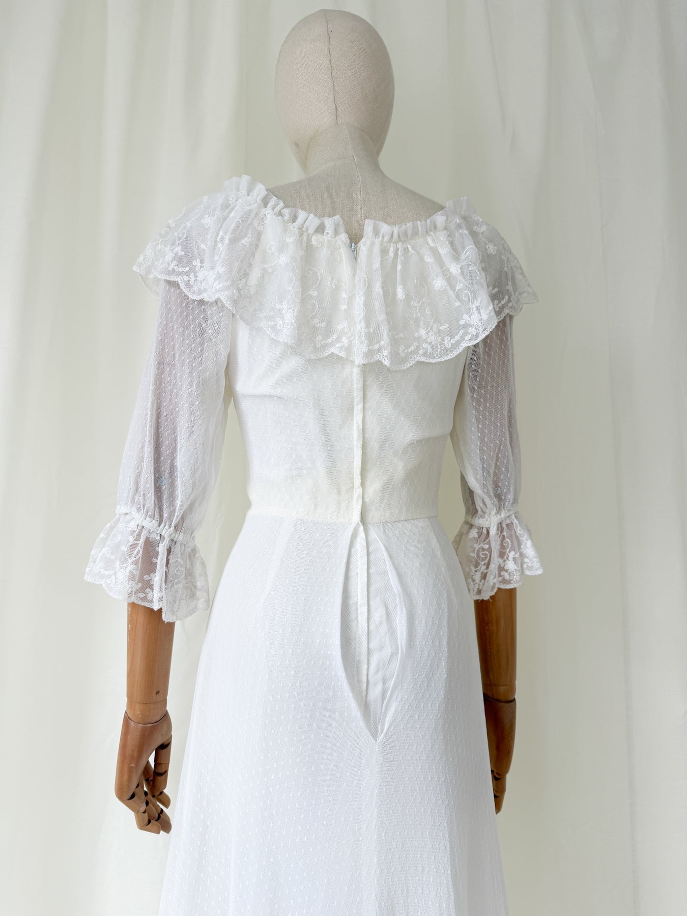 Utterly stunning, this white lace 70s beauty from Kati is magic. She has the most gorgeous details and is truly the most romantic of treasures.