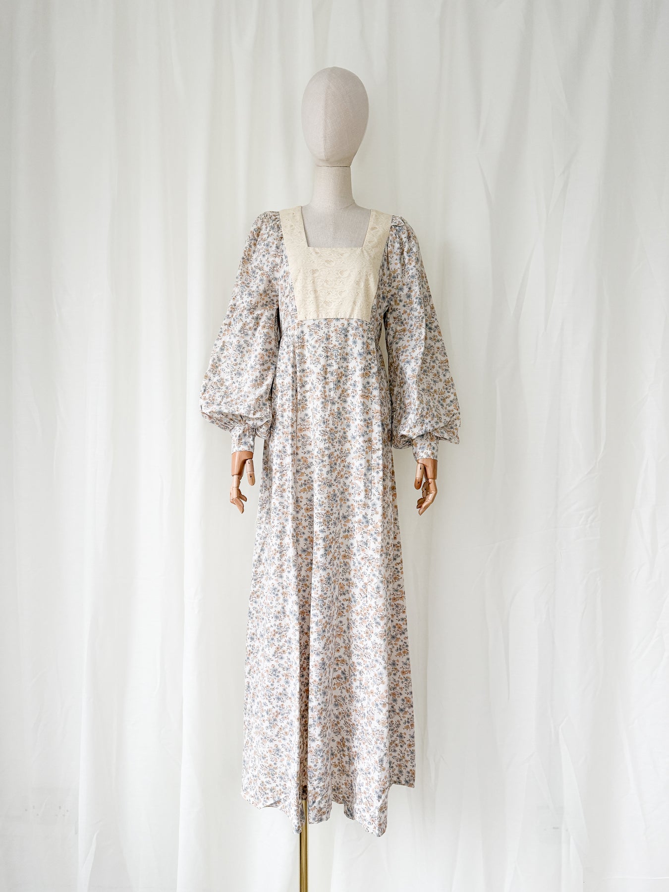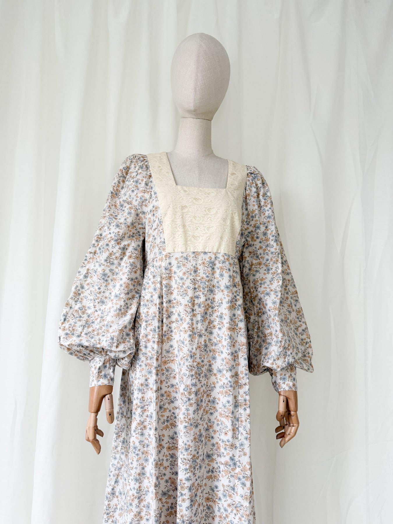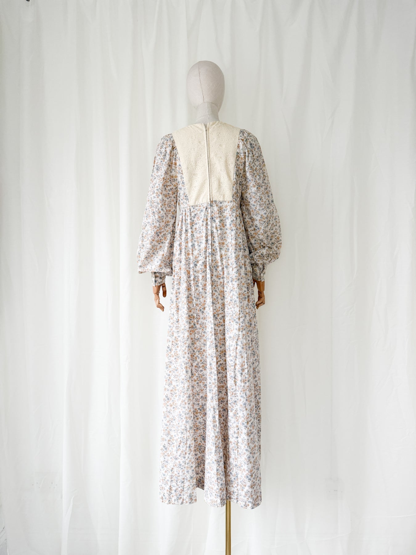 Ethereal Rare 1970s Lace Bodice Billowy Cotton Maxi Dress