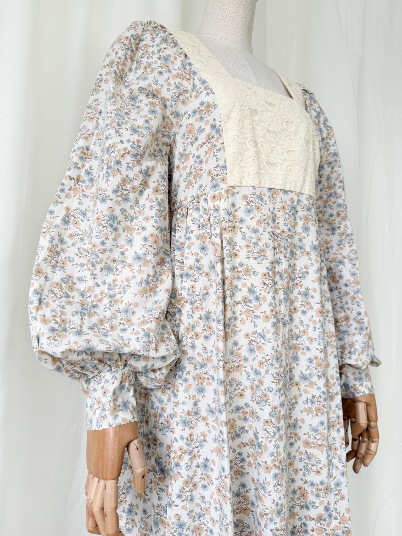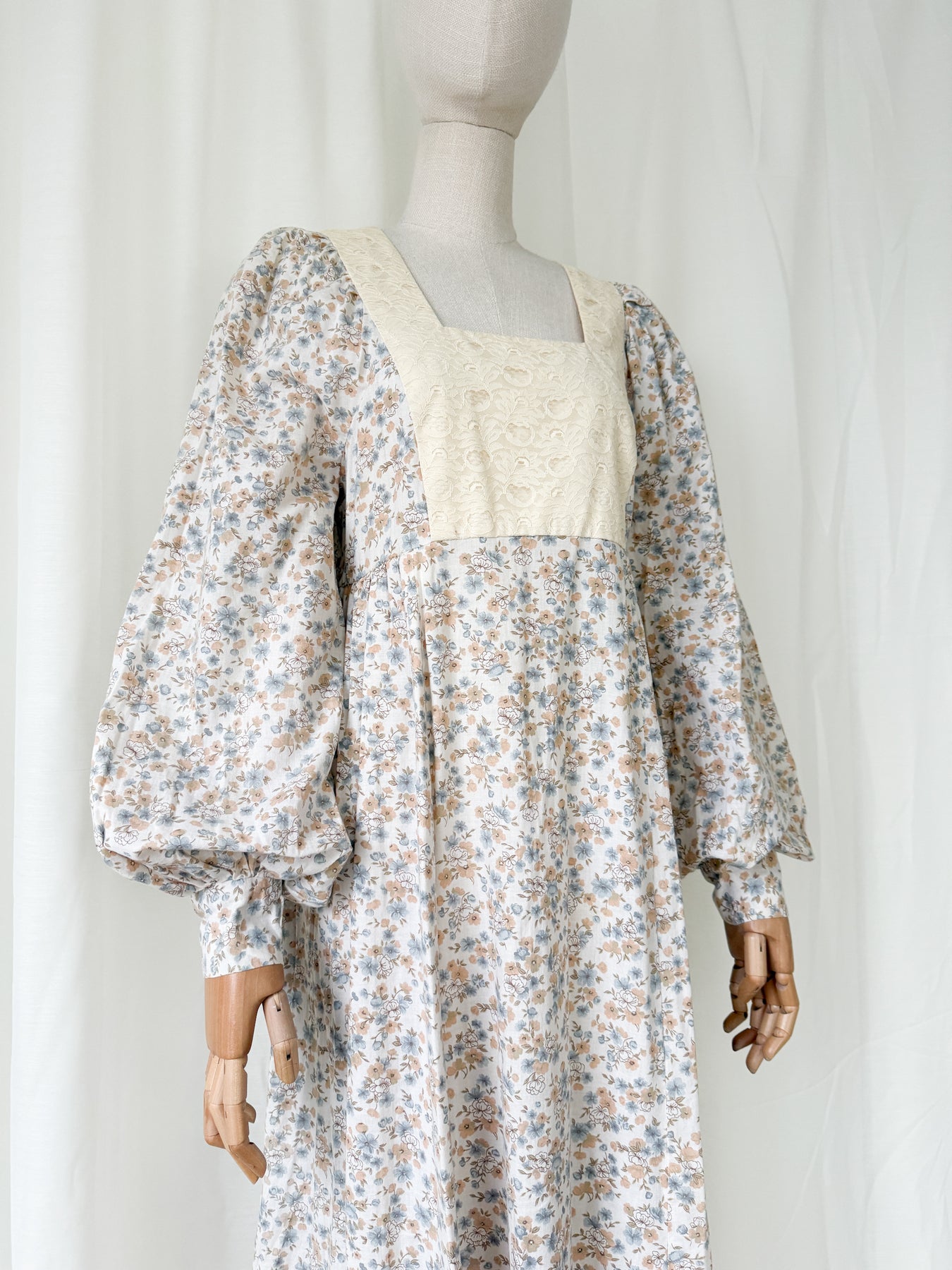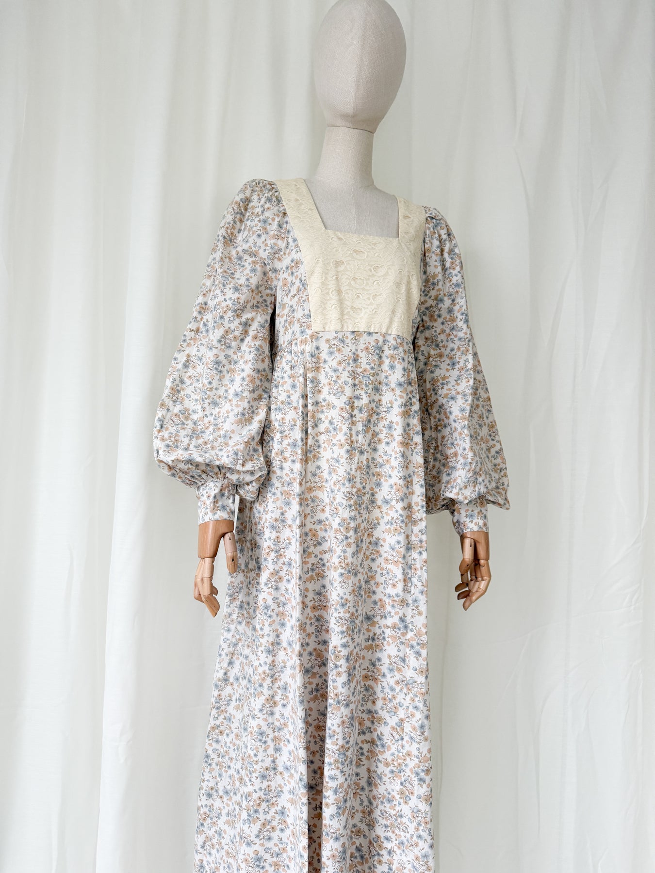 Ethereal Rare 1970s Lace Bodice Billowy Cotton Maxi Dress