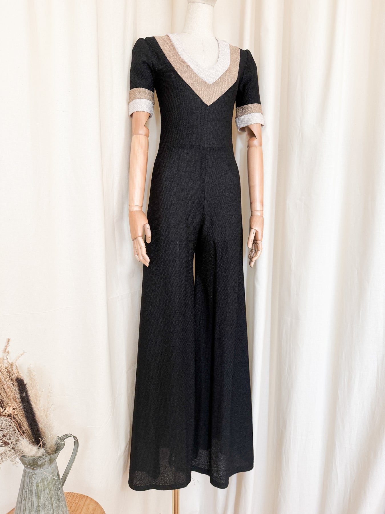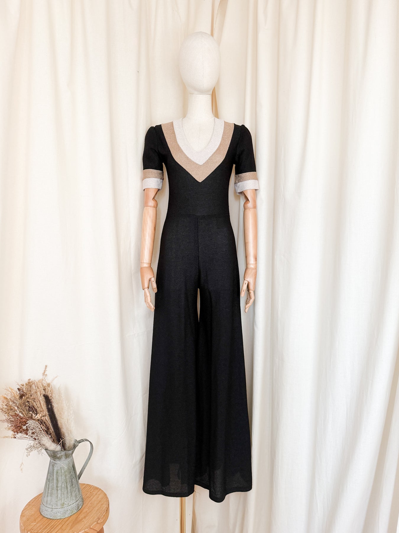 This insane 70s wide legged jumpsuit is the ultimate statement piece. Crafted from a stretch high quality jersey style fibre with plunge neckline in a brown palette she will simply look forever beautiful and is an insanely cool find.