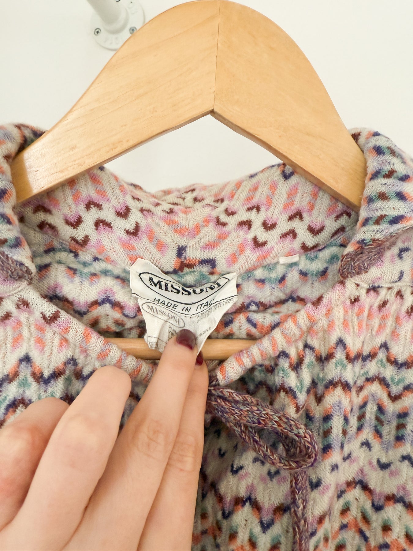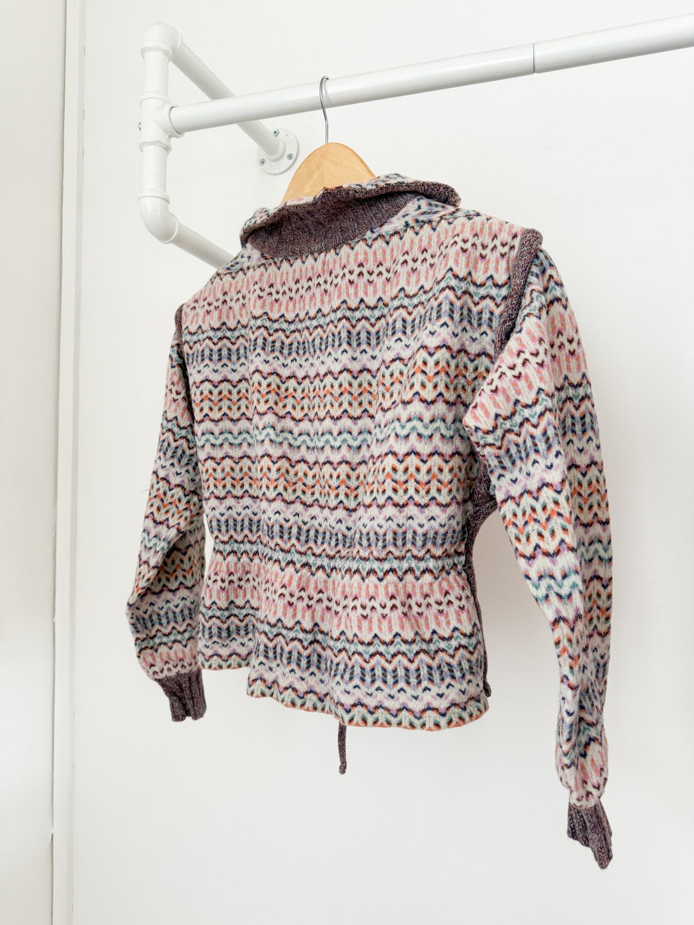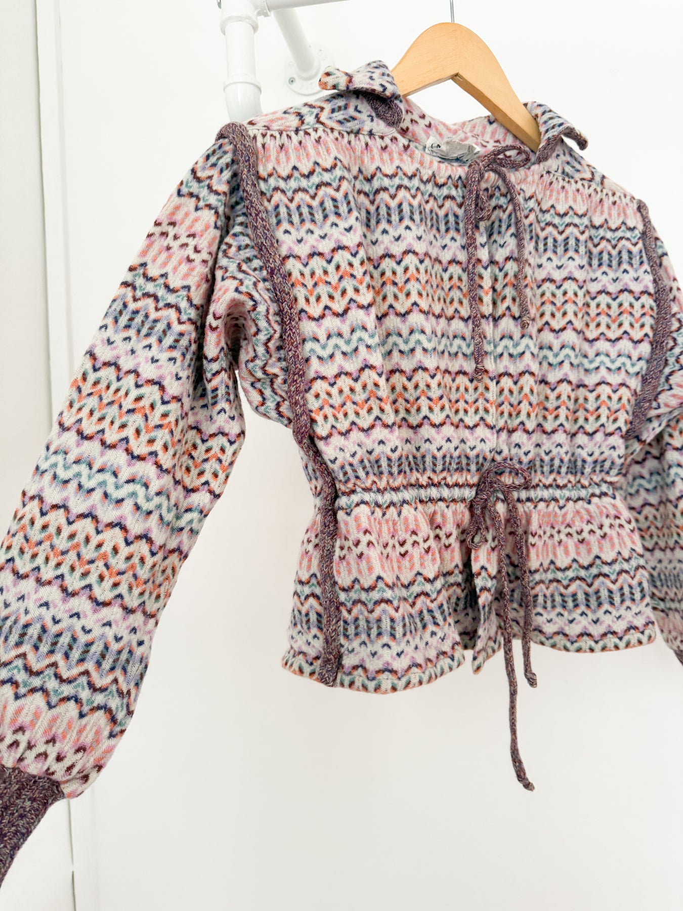 This stunning rare 1970s Missoni open front cardigan is just insanely cool, look at how detailed her knit is! Made from a soft chunky wool.