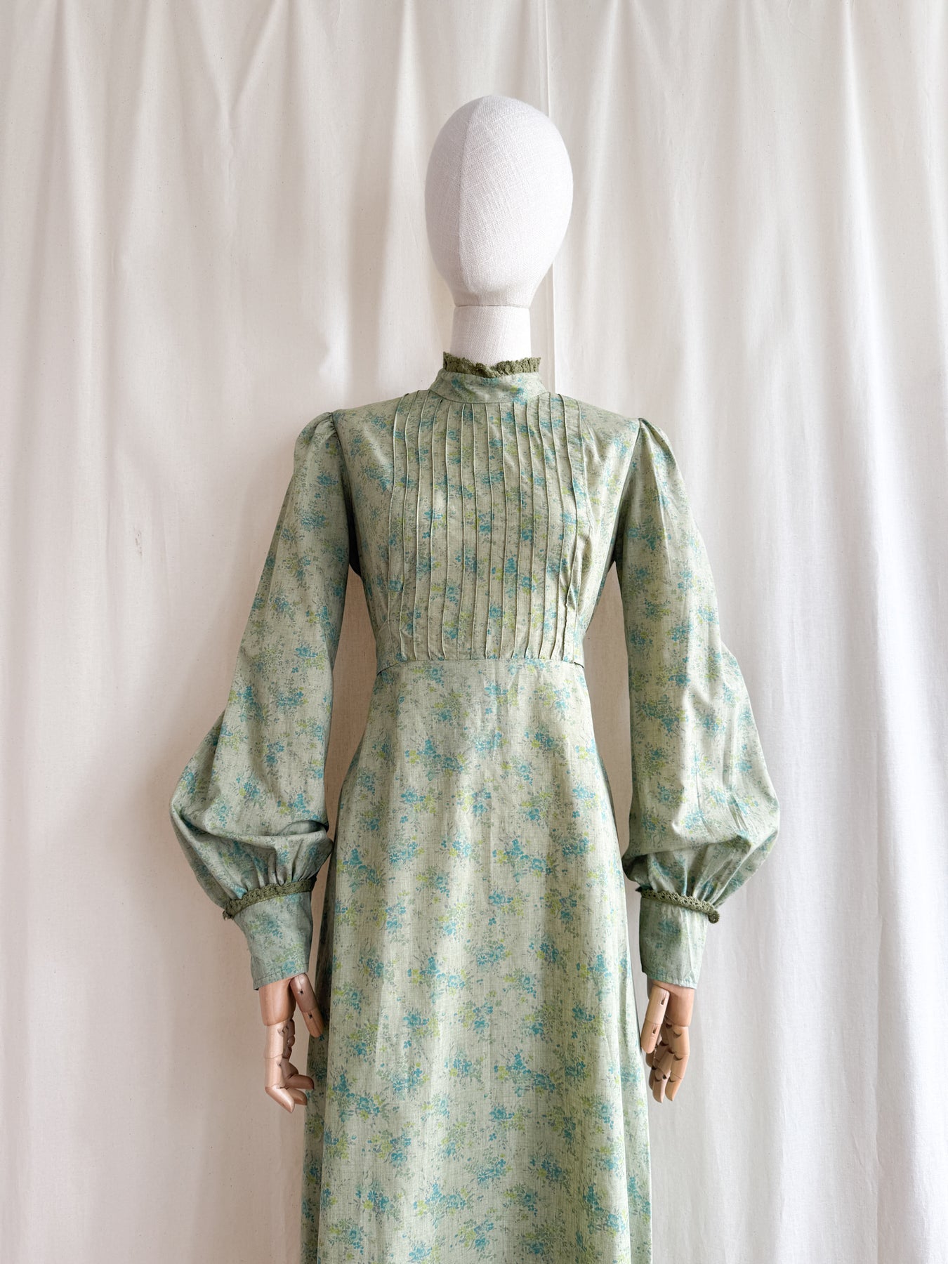 Beautiful Rare 70s Green Soft Cotton Maxi Dress by Zanie