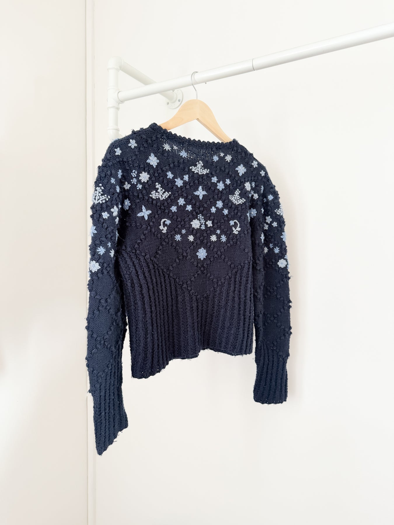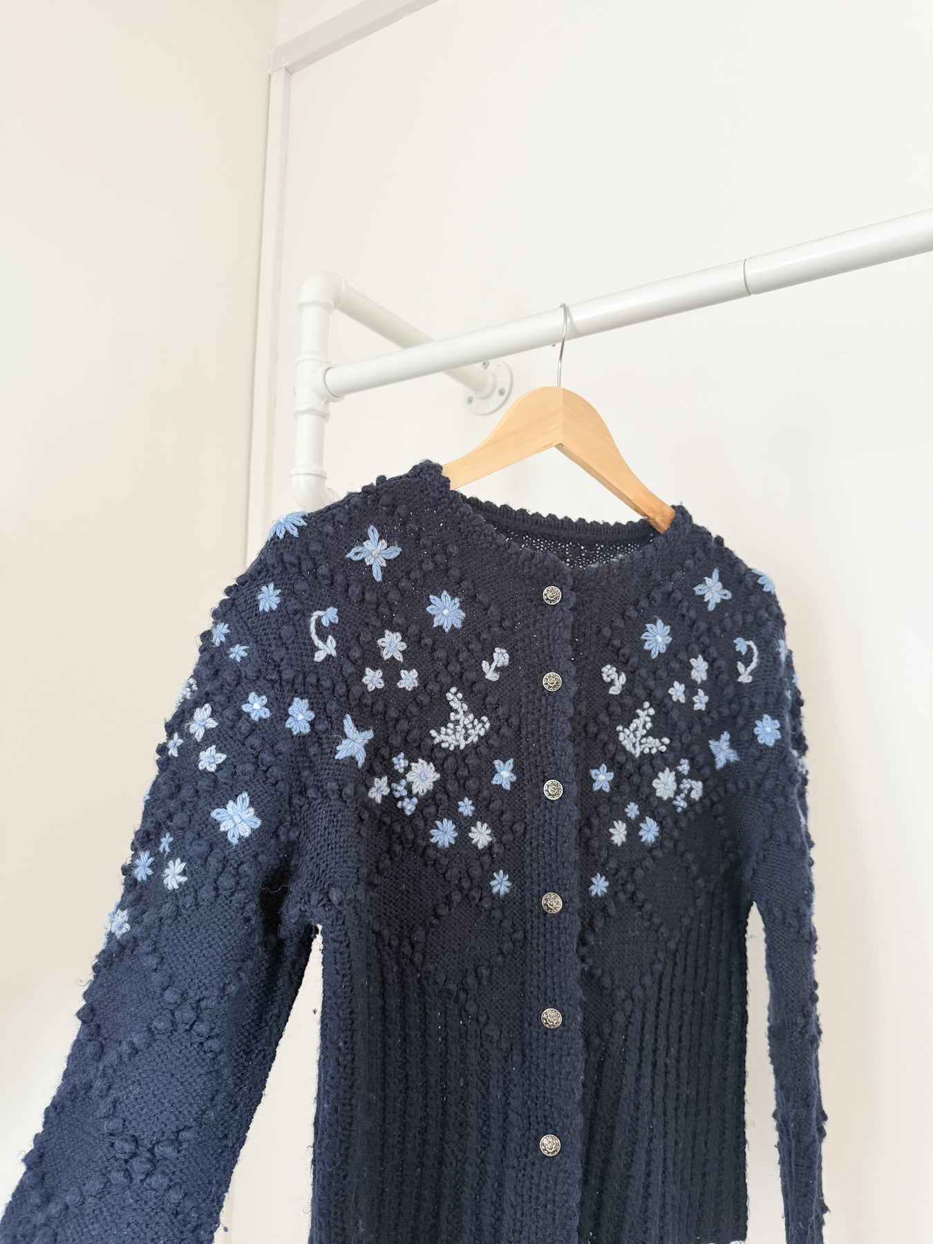 This is one of the rarest and most precious Austrian knits sourced to date, made from a high quality soft snuggly wool yarn with amazing embroidered floral details. She is simply insane, and a truly special one of a kind find to cherish forever.