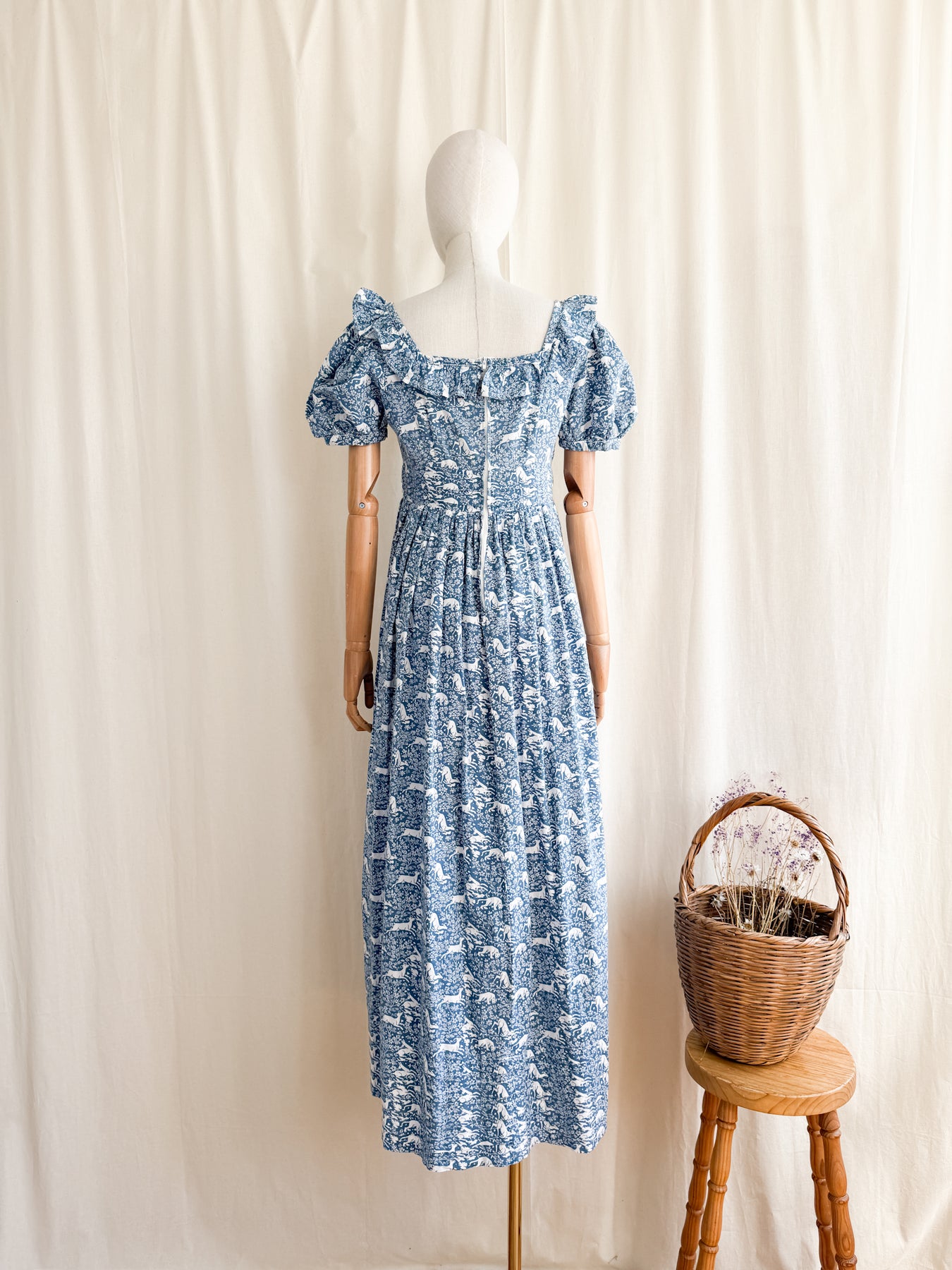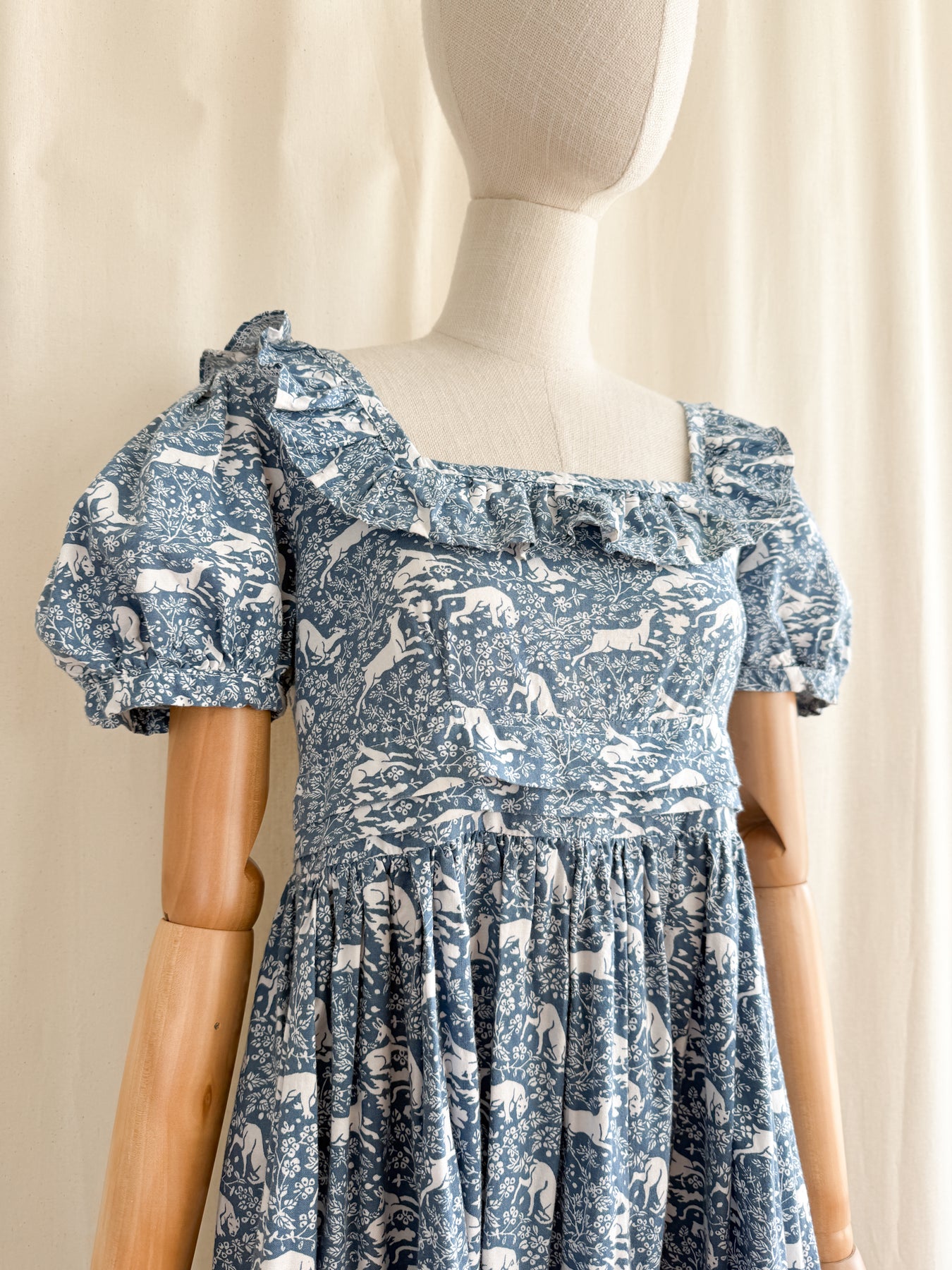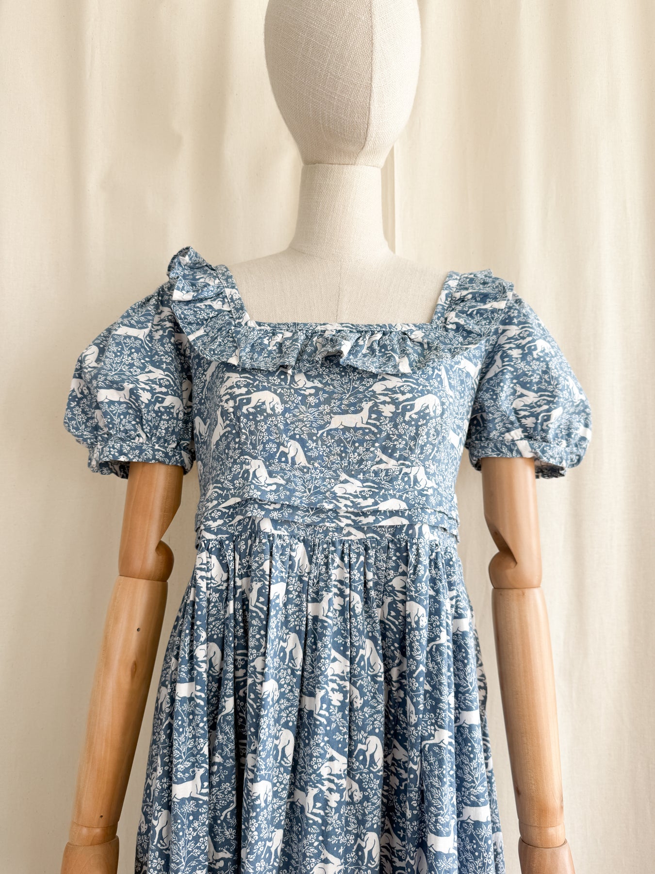 Meet Fable, she is an insane holy grail rare exceptionally collectible Laura Ashley 1970s made in Wales 'Deer and Hound' cotton dream dress. This is a collectors piece, and a museum worthy example of one of LA's most coveted animal prints which I have never before seen come up for sale. I have treasured this dress for what feels like an eternity, and it really is a sad moment listing her to share with one of you, and in all honesty, I wouldn't mind cherishing her for a little longer..