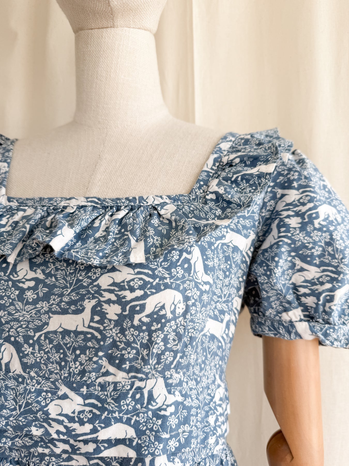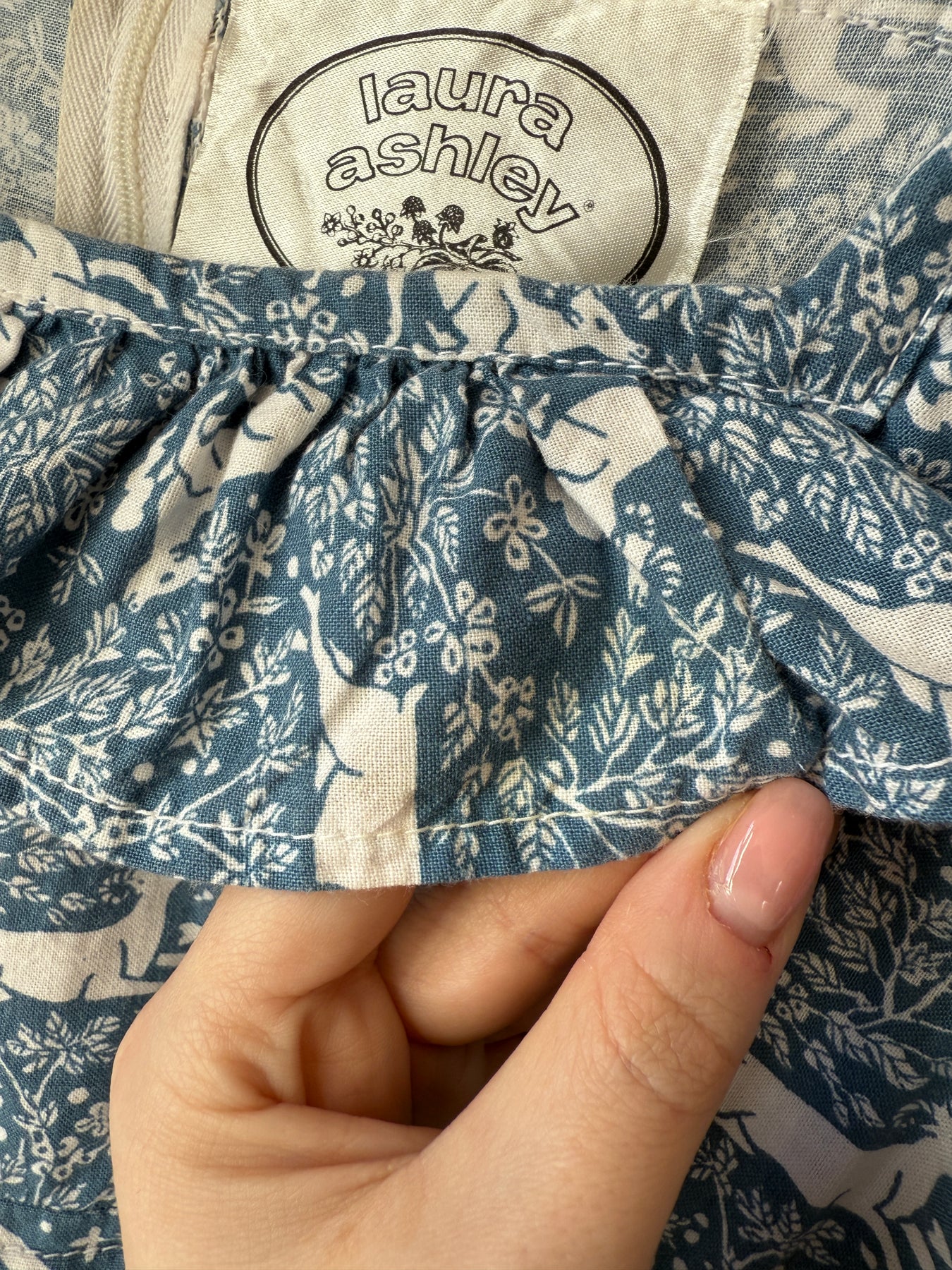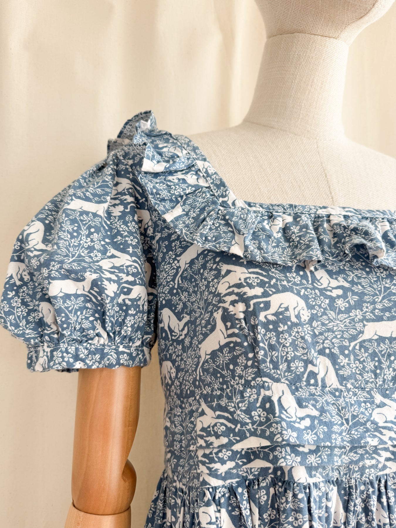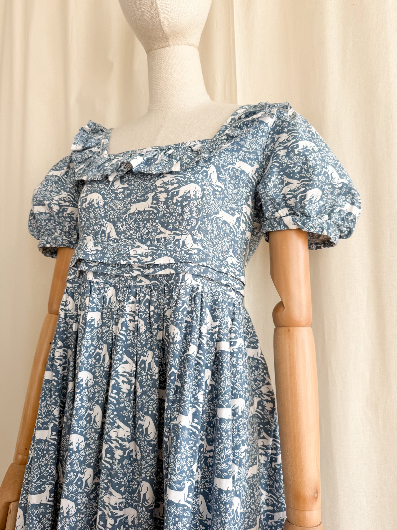 Meet Fable, she is an insane holy grail rare exceptionally collectible Laura Ashley 1970s made in Wales 'Deer and Hound' cotton dream dress. This is a collectors piece, and a museum worthy example of one of LA's most coveted animal prints which I have never before seen come up for sale. I have treasured this dress for what feels like an eternity, and it really is a sad moment listing her to share with one of you, and in all honesty, I wouldn't mind cherishing her for a little longer..